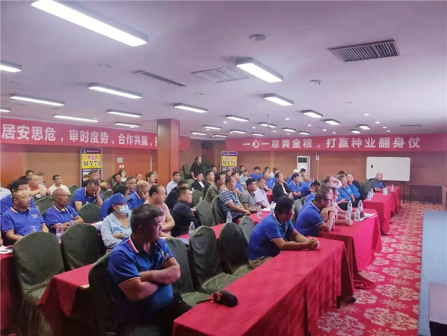 室內會議中,河南省彭創農業總經理楊雪利針對國內外玉米形勢、黃金糧73已驗證的優勢、下階段營銷方案做了詳細闡述,與會人員對黃金糧73未來做成1000萬袋以上的大單品信心滿滿!