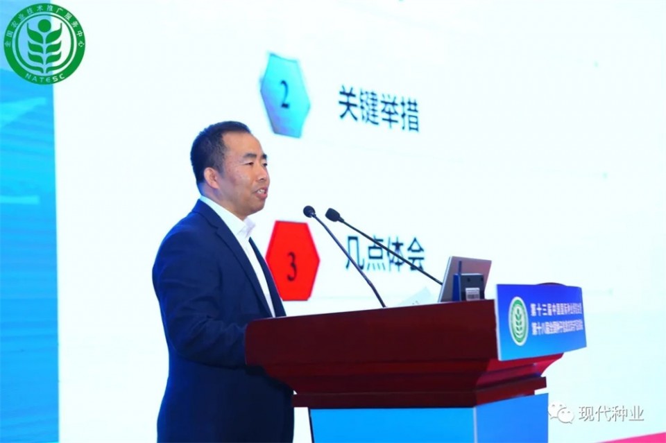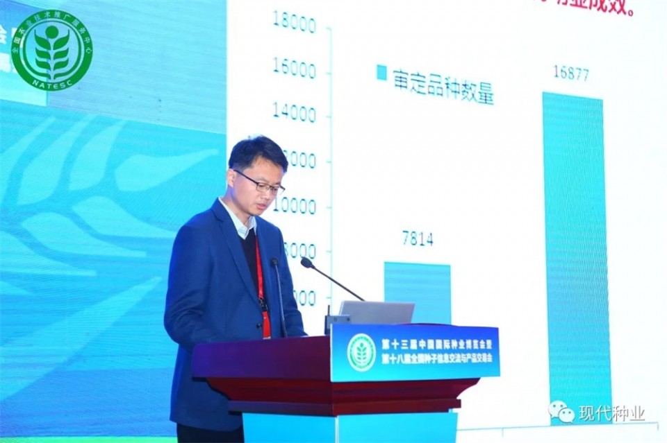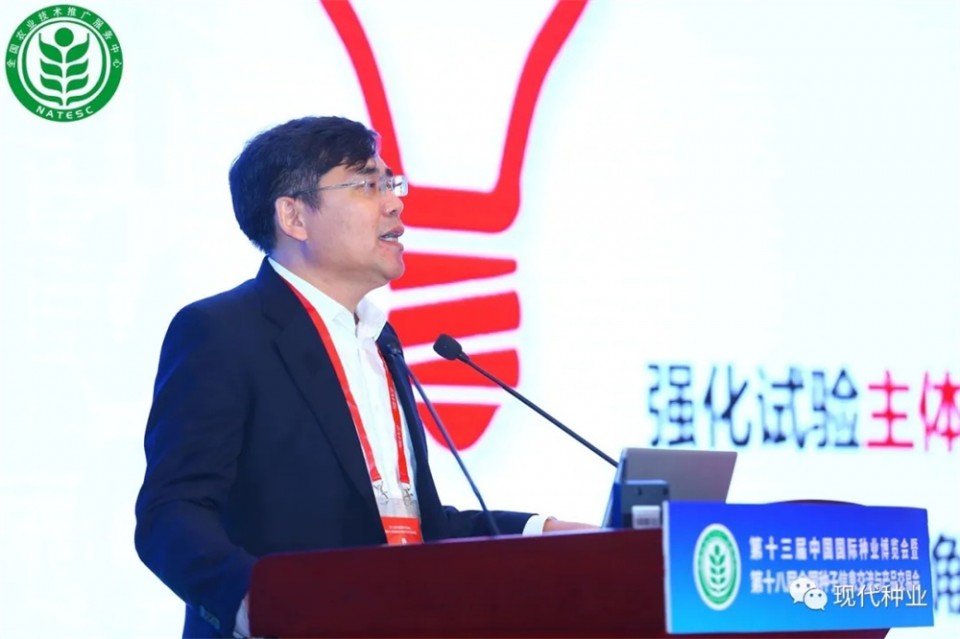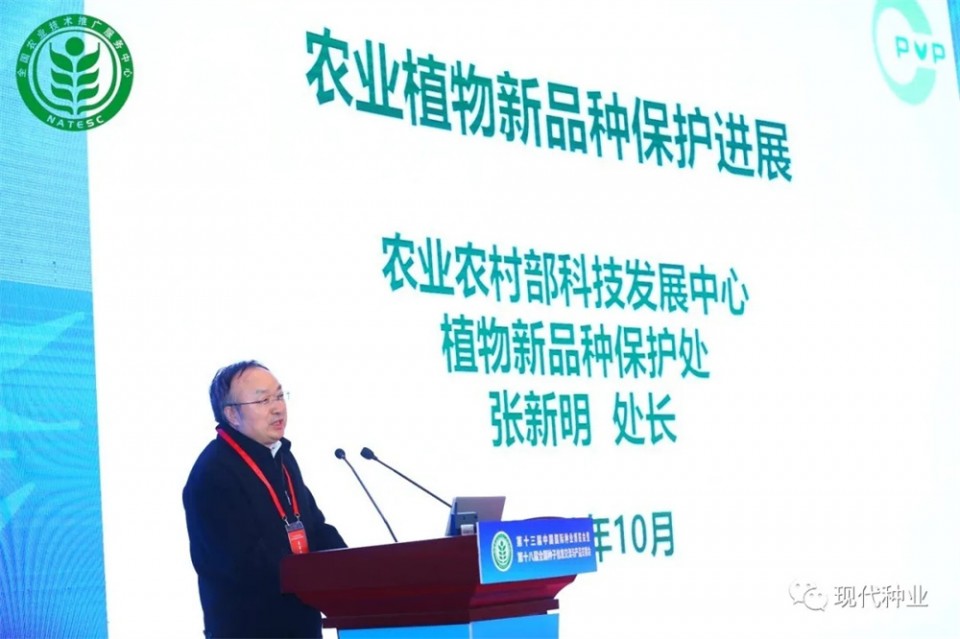 農業農村部科技發展中心植物新品種保護處處長張新明就《農業植物新品種保護進展》作主旨報告