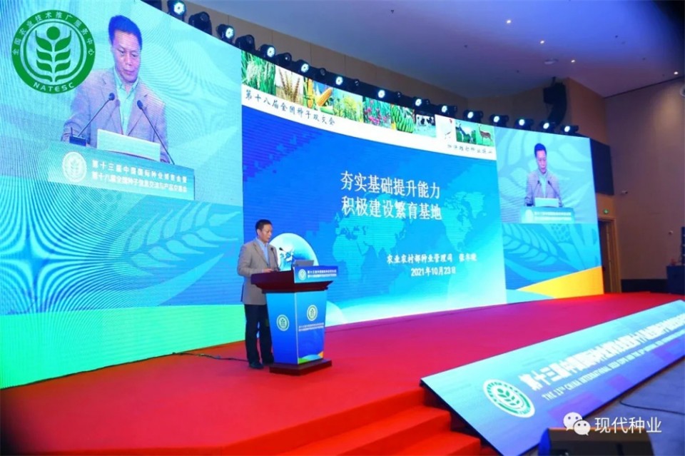金秋十月,正值豐收季節。10月22-24日,第十三屆中國國際種業博覽會暨第十八屆全國種子信息交流與產品交易會(簡稱全國種子雙交會)在山東濟南開幕。本屆雙交會以“興種穩糧保安全,固本強基促振興”為主題,宣傳貫徹黨中央、國務院和農業農村部推進種業振興的工作部署,旨在凝聚行業共識,加快要素聚集,深化交流協作,廣泛發動種業行業及社會力量,全力以赴推進種業振興。全國農業技術推廣服務中心主任魏啟文主持開幕式,農業農村部張桃林副部長講話并宣布開幕,山東省人民政府副省長李猛、濟南市副市長呂濤致辭。