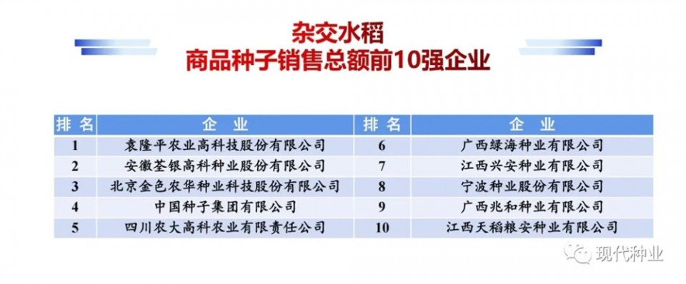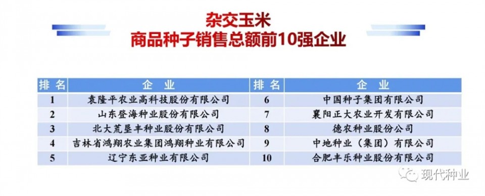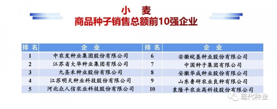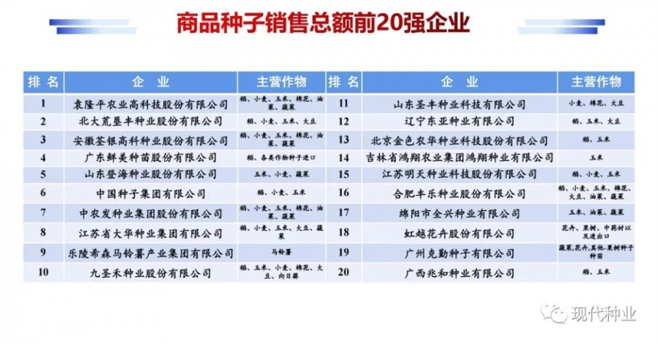 會上還發布了2020年度中國種業頭部企業名單和2020年度主要農作物前10大品種。