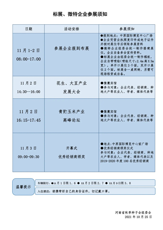 2021河南省秋季種子信息交流暨產品展覽會將于11月1-3日在中原國際博覽中心召開。