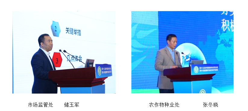 10月23日,農業農村部種業管理司市場監管處處長、一級調研員儲玉軍,農作物種業處處長、一級調研員張冬曉,品種創新處副處長陶偉國,畜禽種業處一級主任科員孫雯在第十三屆中國國際種業博覽會暨第十八屆全國