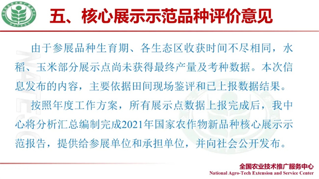 雙交會——推進種業振興信息發布會上,全國農技中心品種區試處副處長曾波發布了2021國家農作物新品種核心展示示范信息。