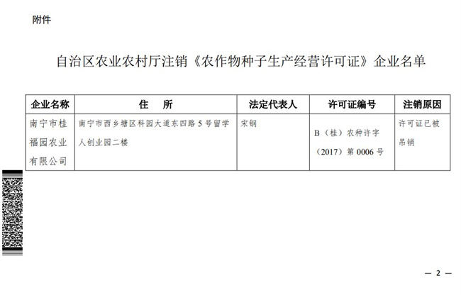廣西:關于注銷農作物種子生產經營許可證的公告