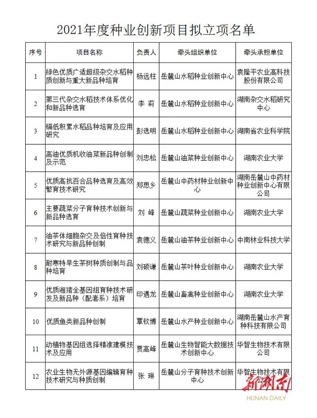 組織實施種業創新項目,首批擬立項12項