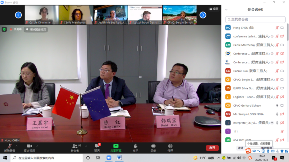 11月3-5日,中心與歐盟植物新品種保護辦公室(CPVO)、IPKey China聯合主辦2021 IPKey植物新品種權技術培訓班在線舉辦。來自我國農業、林業植物新品種保護測試體系的90多名代表參加,中心植物新品種測試處陳紅處長出席開幕式并致辭。