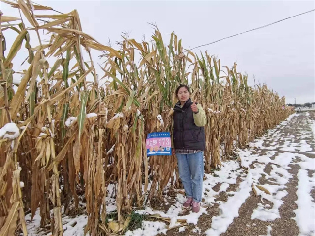 駐馬店區域銹病青枯大面積發生,很多玉米品種因為青枯、銹病早衰,玉米產量普遍600-800斤;但此次測產的黃金糧73于6月5日播種,至今已過去158天的時間,特別在11月6-7日全省大降溫,風力達到9級以上,黃金糧73依舊傲立田間,挺直站立;黃金糧73的抗青枯、抗銹病能力得到完美體現,表現出全生育期抗倒!