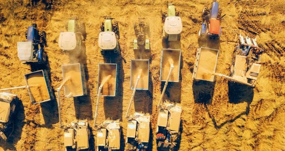 ▲ 2021年10月20日,在遼寧省鐵嶺市鐵嶺縣新臺子鎮西三家子村,萬鑫水稻種植專業合作社機械化收割現場 楊青攝
