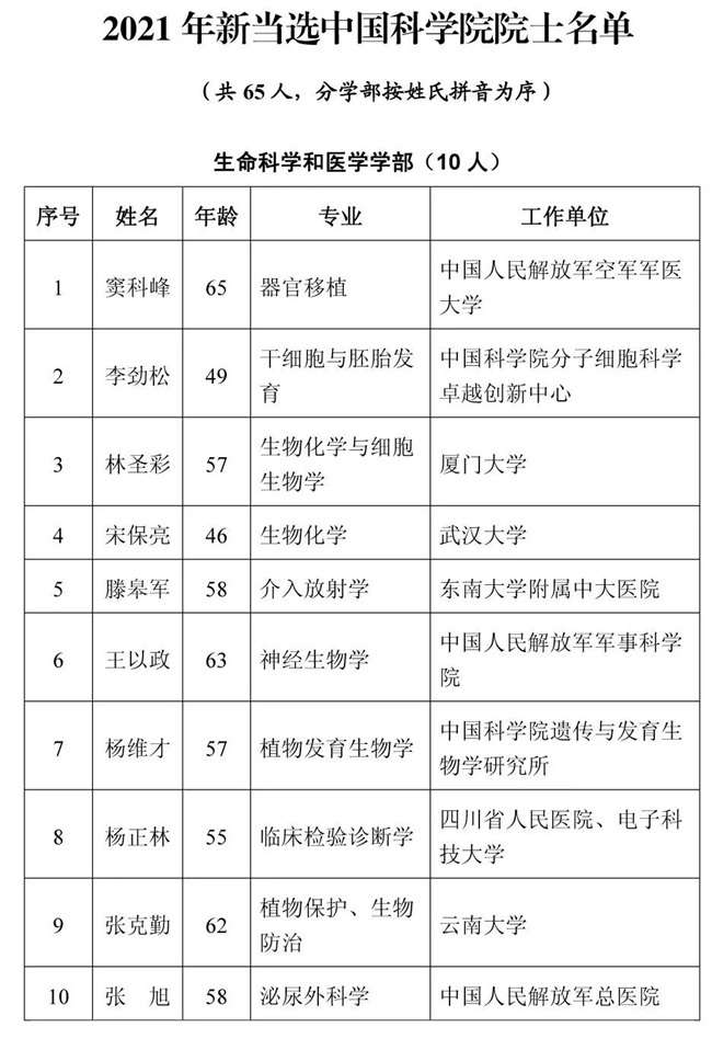 其中,農業學部共10人入選中國工程院院士。入選生命科學與醫學學部的10名中國科學院院士中,涉及農業領域共2名。