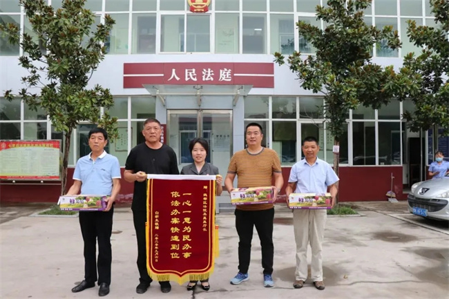 為表達謝意,9月8日上午,白某來到河南省許昌市魏都區人民法院七里店法庭,將繡有“一心一意為民辦事、依法辦快速到位”的錦旗和自己種的葡萄交到河南省許昌市魏都區人民法院七里店法庭副庭長吳真真手里。