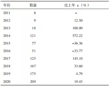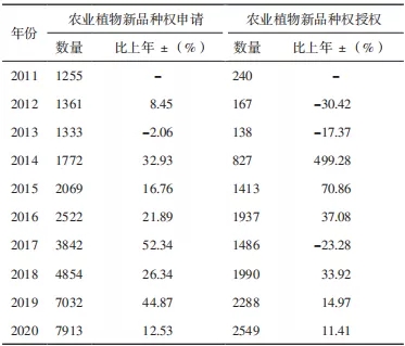 表2 農業植物新品種權申請數量及授權數量(2011-2020)