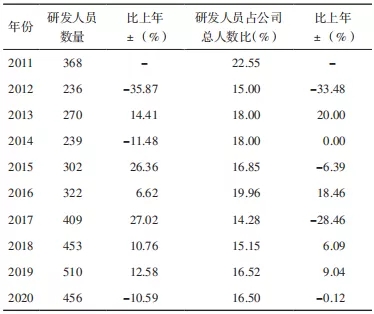 在研發團隊建設方面,隆平高科2011年各種科研人員368人,占公司總人數的22.55%,2020年增加到456人,占公司總人數的16.50%(表5)。而國外很多企業研發人員數量占公司總人數的30%~40%。