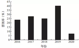 圖3 2016-2020年1年區試品種晉級(ji)率