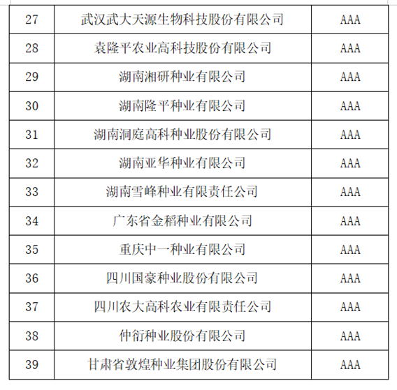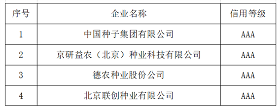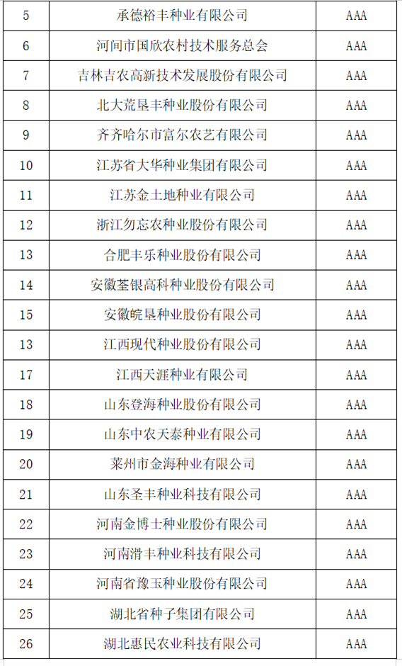 行業信用體系建設,營造規范有序的種業市場環境,經中國種子協會信用評價領導小組研究決定,對自2011年以來一直保持AAA信用等級的信用企業授予“十年AAA信用企業”牌匾。希望這些企業再接再厲,繼續保持榮譽,發揮帶頭作用,為種業振興貢獻更大的力量!