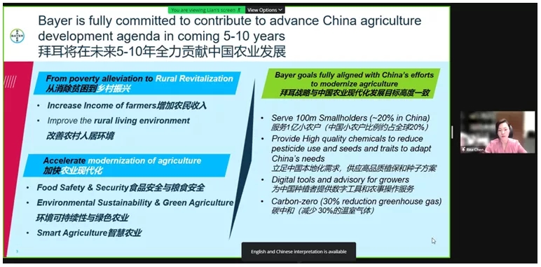 在12月1日的第七屆中德農業周開放日暨鄉村振興研討會上,拜耳作物科學大中華區客戶市場部總監陳昕表示,“拜耳在中國大力發展鄉村和振興鄉村過程中,以創新為驅動,堅持可持續發展的理念,開啟在中國農業領域的轉型新機遇。”