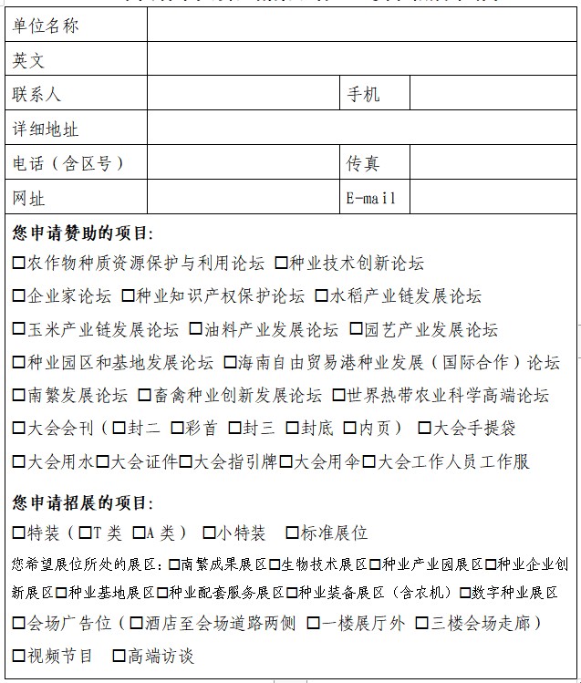 2022中國種子大會暨南繁硅谷論壇贊助招展申請表