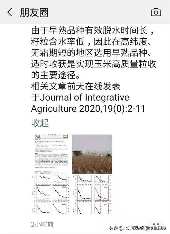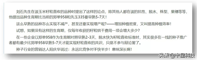 下圖,是劉石先生(sheng)關(guan)于【玉米籽粒機收+早熟(shu)+密植】的(de)觀點截(jie)圖: