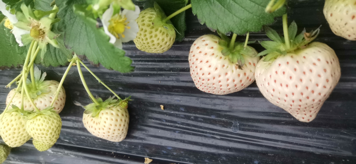 金華市現有草莓種植1萬多畝,金東區江東鎮有草莓4000畝左右,全市草莓品種以紅頰草莓為主,紅頰草莓以酸甜適口占領市場的主導地位。2021年9月份,經市農業農村局經濟特產技術推廣站牽線搭橋,江東鎮盧村種植大戶蘆建軍引種杭州市農科院的粉玉草莓。粉玉草莓粉紅色,口感較甜,目前開始上市,批發價達到70元一斤的高價,且供不應求。