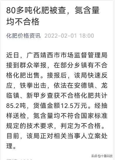 “賣肥料的”賺得多了,肥料“賣得又不貴”(貴了種植(zhi)戶(hu)也不買啊!)——所以,就是肥料的總(zong)養分含量不足,而且更多的是成本低(di)廉的或劣(lie)質肥料原料。如下圖(tu)的最新曝光,又如衡(heng)水市桃(tao)城區某合作社的偽劣(lie)肥料被處罰等案例。