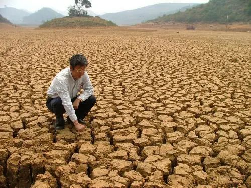 李少昆在檢查土地的干旱情況