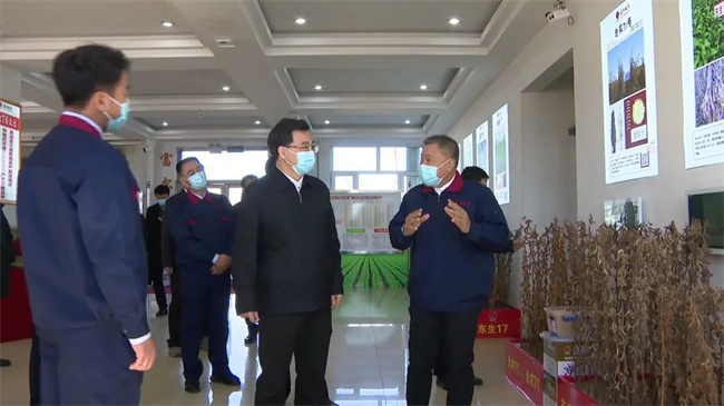 張立董事長向胡昌升省長匯報公司大豆種子備春耕生產情況。