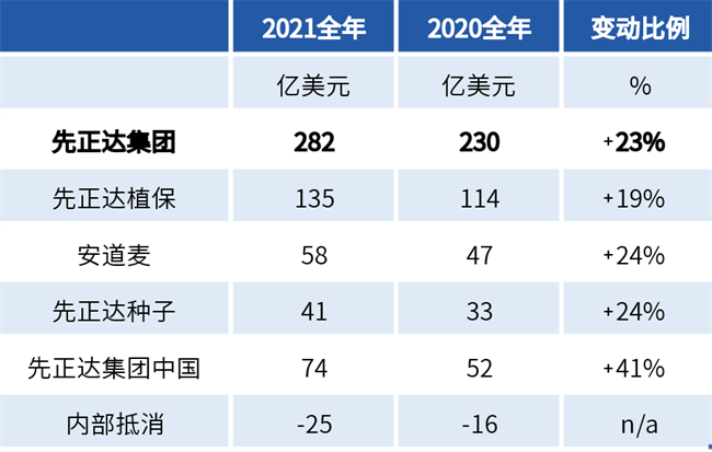 先正達集團發布2021年全年業績,營業收入增長23%,達282億美元。市場對可持續農業產品和服務的強勁需求推動全年營業收入比上年增加52億美元。