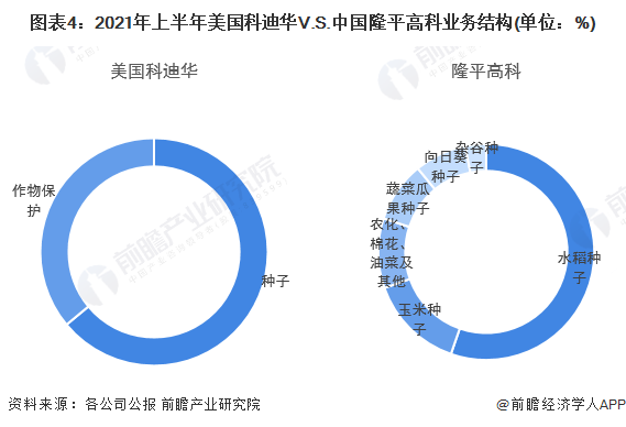 此外,科迪華與隆平高科均對種子產業鏈進行了延伸,目前科迪華業務涵蓋種子與作物保護兩大領域。2021年上半年,科迪華種子業務營收占比為 64%,作物保護業務營收占比為 36%。