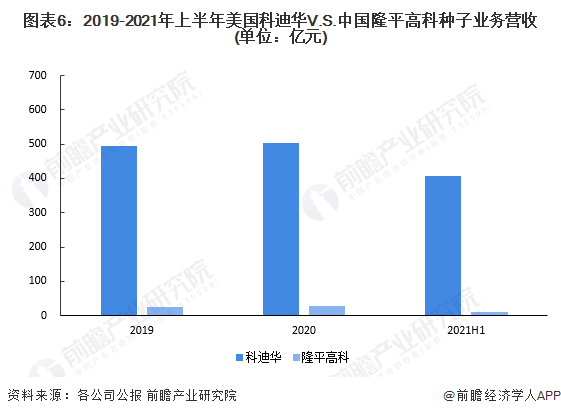 在營收方面,2021年上半年,科迪華的種子業務營收為 62.72 億美元,折合人民幣 407.68 億元,總營收 637.65 億元;隆平高科種子業務營收為 10.03 億元,總營收 11.2 億元。