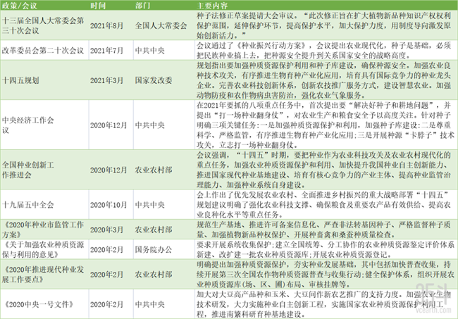 近年我國種業重要政策匯總 資料(liao)來(lai)源:前瞻產業研究(jiu)院、35斗