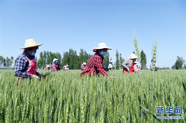 目前正是小麥開始抽穗、揚花、灌漿期,沁陽市農作物育種企業適時組織人員對小麥種子田進行人工去雜工作,徹底清除小麥種子田的雜株、變異株、病株等,防止品種混雜、退化,確保小麥良種純度。(楊帆 攝)