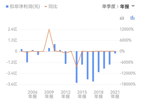 扣非凈利潤已連續虧損十年,合計虧損18.65億元(2012~2021年)
