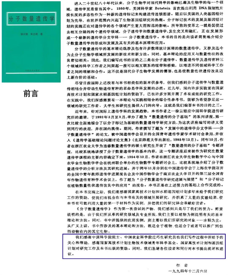 圖4 《分子數量遺傳學》前言中致謝莊巧生先生