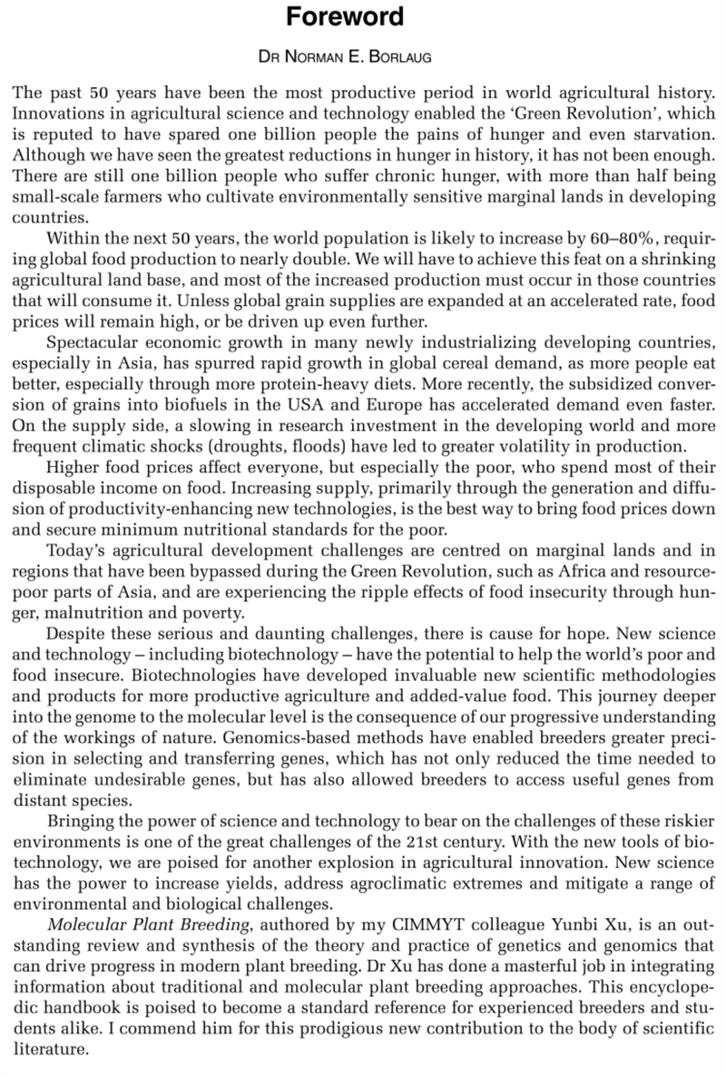 圖10 諾曼·布勞格博士為Molecular Plant Breeding撰寫的序言