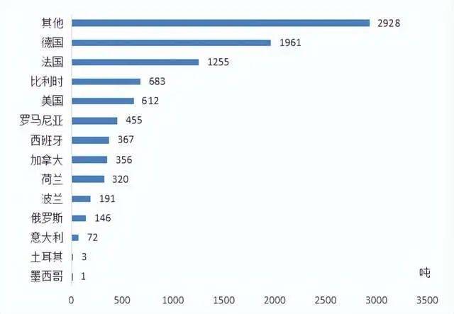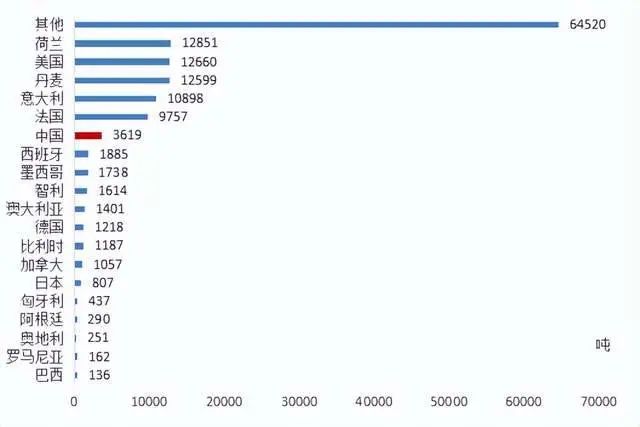 圖表3. 2019年全球蔬菜種子進口量(liang)