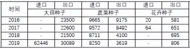 圖表13. 2016-2019年我國種子(zi)進出(chu)口情況(單位:噸)