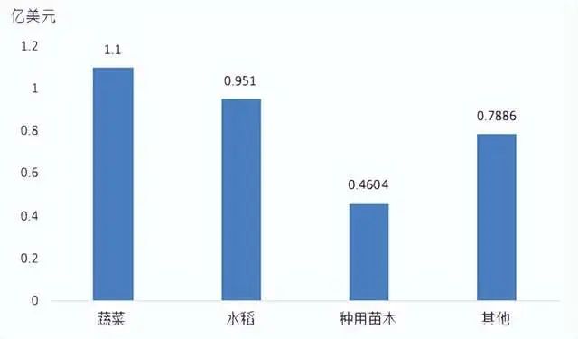 2021年(nian),我(wo)國農(nong)作物種(zhong)(zhong)(zhong)子出口(kou)貿易額3.3億美(mei)元,主要品種(zhong)(zhong)(zhong)包括蔬菜(cai)種(zhong)(zhong)(zhong)子(1.1億美(mei)元,占(zhan)比33.3%)、水(shui)稻(dao)種(zhong)(zhong)(zhong)子(9510萬美(mei)元,占(zhan)比28.8%)、種(zhong)(zhong)(zhong)用苗木(4604萬美(mei)元,占(zhan)比14%),其他種(zhong)(zhong)(zhong)子(7886萬美(mei)元,占(zhan)比23.9%)。水(shui)稻(dao)種(zhong)(zhong)(zhong)子為(wei)自主優(you)勢品種(zhong)(zhong)(zhong),出口(kou)約(yue)40個國家(jia)和地區,其他多為(wei)外(wai)繁品種(zhong)(zhong)(zhong)。