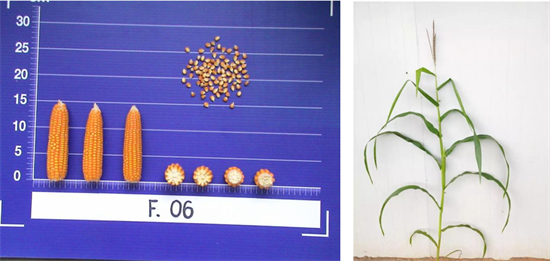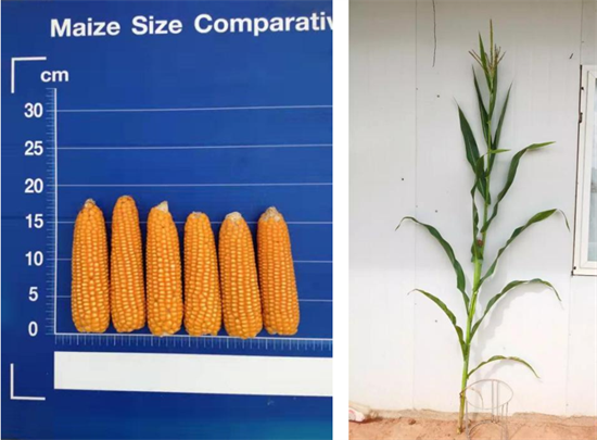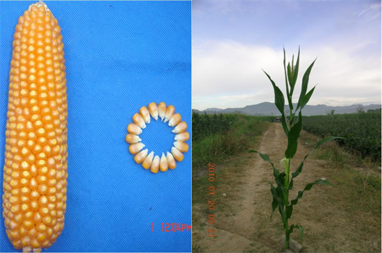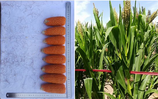 特性:生育期110天,株高165cm 穗位高80cm,果穗筒型,穗長14cm,籽粒橙色,硬粒型,白軸,花絲紅色,雄花紫色。