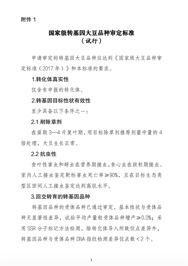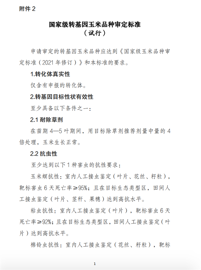 國家級轉基因大豆玉米品種審定標準