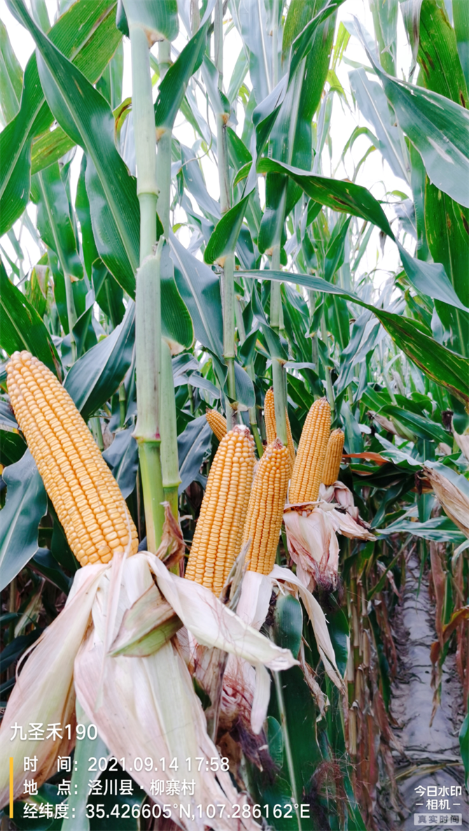 九圣禾190抗大斑病、青枯病。在2020年甘肅平涼點大斑病非常重,但是九圣禾190表現出較好的抗病性。
