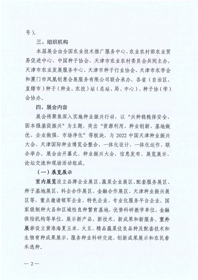 經農業農村部批準,第十四屆中國國際種業博覽會暨第十九屆全國種子信息交流與產品交易會(以下簡稱展會)擬于2022年11月4—6日在天津市舉辦。現將有關事項通知如下: