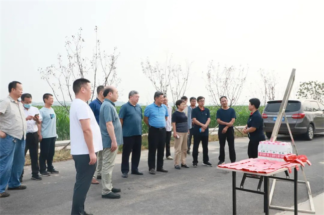 7月15日, 河南省種業發展中心主任馬運糧,副主任周繼澤、滕開瓊,河南秋樂種業科技股份有限公司總經理侯傳偉及河南省種業發展中心其他領導一行冒著酷暑來到2022年國家玉米新品種核心展示河南新鄉展示點考察玉米田間長勢情況。