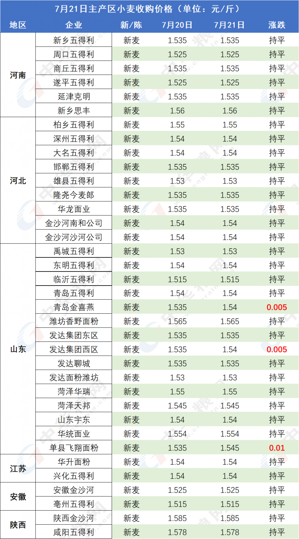 小麥短期上漲明顯,后期等到小麥政策性儲備輪換補庫結束,需求回歸到面粉加工為主的渠道上來,價格被動性可能更大,供需寬松的基本面下不要對行情過于樂觀。7月21日成武利生集團漲一分,普麥1.55元/斤,其他地區新麥漲價消息請點開鏈接查看