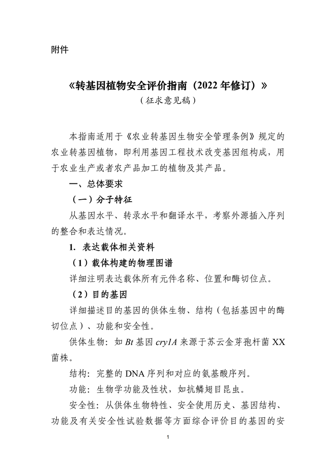 根據《農業轉基因生物安全管理條例》《農業轉基因生物安全評價管理辦法》等有關規定,為進一步規范農業轉基因生物安全評價工作,農業農村部農業轉基因生物安全管理辦公室組織修訂了轉基因植物安全評價指南,現向社會公開征求意見。請于2022年7月29日前以書面或電子郵件形式反饋意見。