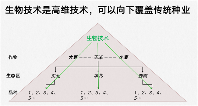具體到作物上來說,大豆需要與優秀的大豆企業、行業專家及優異人才合伙,以實現2025行業領軍,2035全球領軍的目標。水稻需要聚力發展薄弱區塊,爭取銷售收入超過15億元。玉米在育、選、繁、推、服五方面發力,全技術鏈布局,全生態區服務。