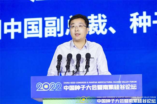 農民日報社副總編李煒宣讀“2021年中國種業十件大事”發布詞。