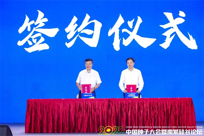 中國種子協會會長張延秋、三亞崖州灣科技城管理局局長陳希作為代表簽署中國種子協會與三亞崖州灣科技城管理局“合作備忘錄”。