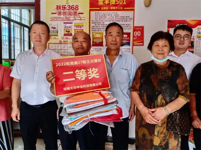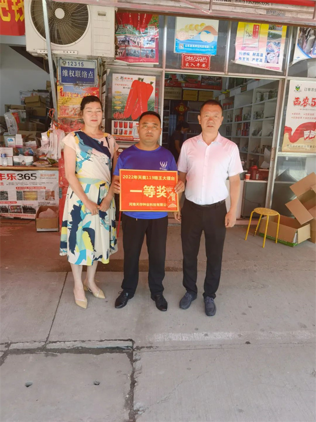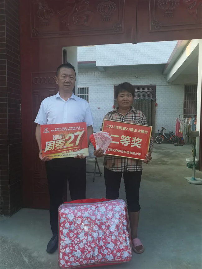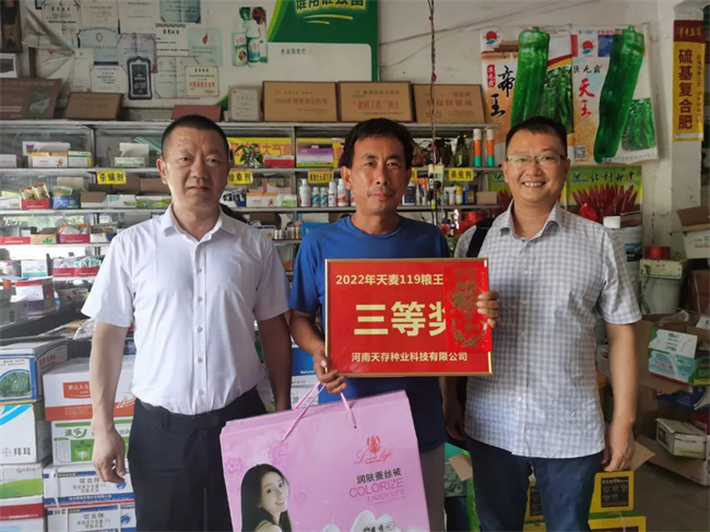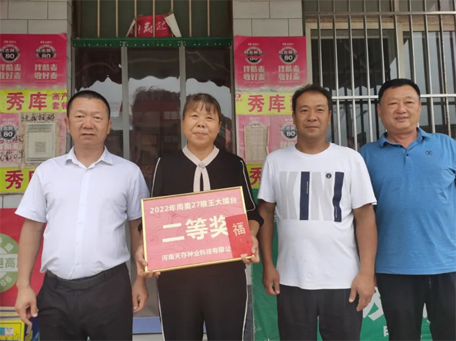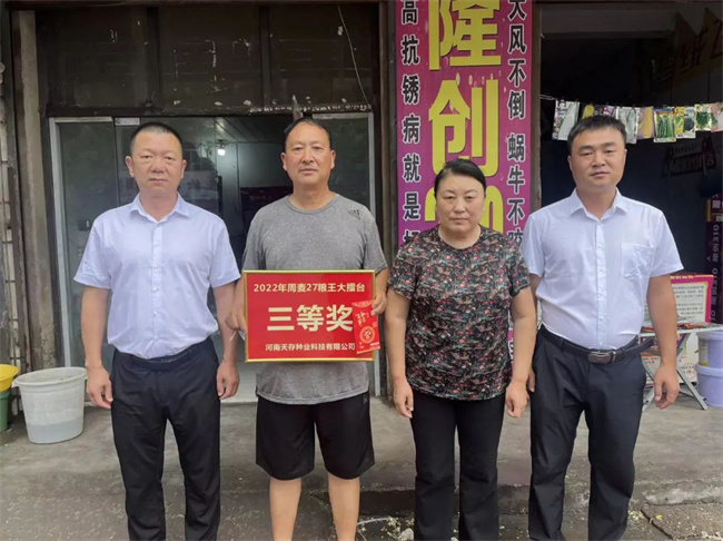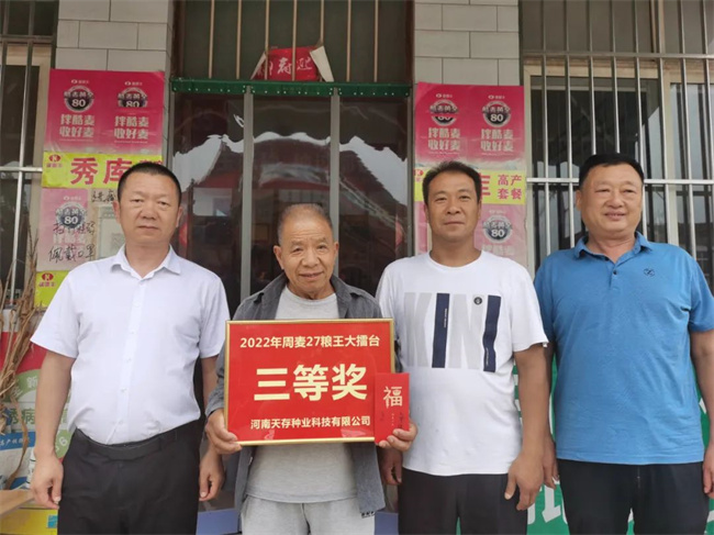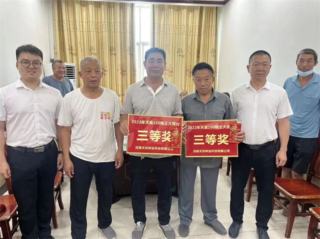 2022年河南天存種業全新周麥27號、天麥119、天麥160、天麥166小麥新品種喜獲豐收!各地頻傳捷報。我公司根據“糧王”大擂臺活動規則,對獲得2022年度河南天存種業“糧王”大擂臺高產種植戶進行頒獎!