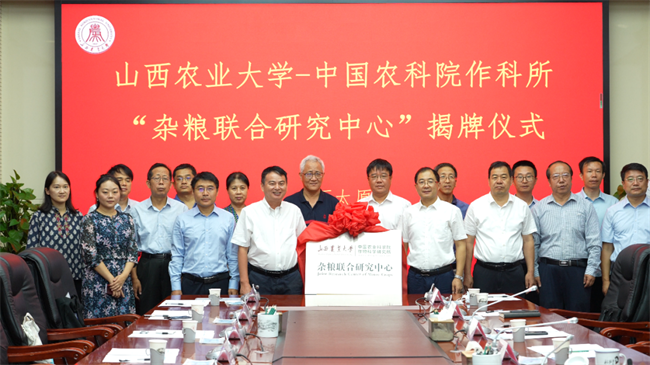 8月1日,山西農業大學—中國農科院作科所“雜糧聯合研究中心”揭牌儀式在山西省太原市舉行,作科所所長、中國科學院院士錢前和山西農業大學黨委書記廖允成共同為“雜糧聯合研究中心”揭牌,山西省科學技術廳二級巡視員蔡穎鑫,山西省農業農村廳二級巡視員閆寅寶,作科所副所長王文生,山西農大校長張強、副校長孔照勝,國家谷子高粱產業技術體系首席科學家刁現民,以及雙方雜糧專家代表等見證了揭牌儀式。
