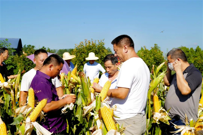 8月6日,太陽炙烤著大地,河南大部分地區氣溫達到37度以上。高溫同樣也考驗著許多玉米的耐熱性。在南陽市方城縣獨樹鎮的一處示范田里,來自南陽市各縣區經銷商、種植戶冒著酷暑現場品鑒了高溫下農大778的突出表現。