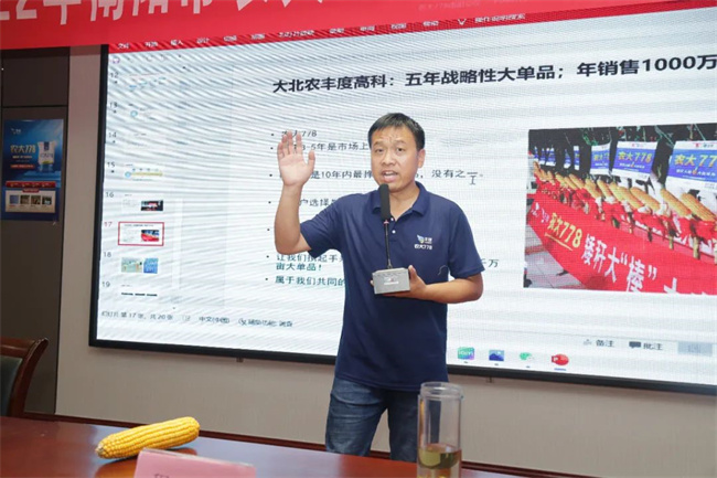 北京豐度高科作為大北農集團玉米種業板塊,堅持“報國興農、爭創第一、共同發展”的大北農核心理念,以“誠信·進取·效率·共贏”為企業核心價值觀,以“持續創造更好作物品種,為全國農戶提供高質量的種子產品并科學推廣,幫助事業伙伴創造更高價值”為企業宗旨。北京豐度高科豫皖區負責人張飛分享了農大778的特征特性等主要性狀,并表示,要以農大778為抓手,扎實做好豫皖區域的推廣計劃,切實讓廣大種植戶提高收益!豐度高科愿與大家攜起手來打造屬于自己的千畝大單品,走上共同的財富之路。